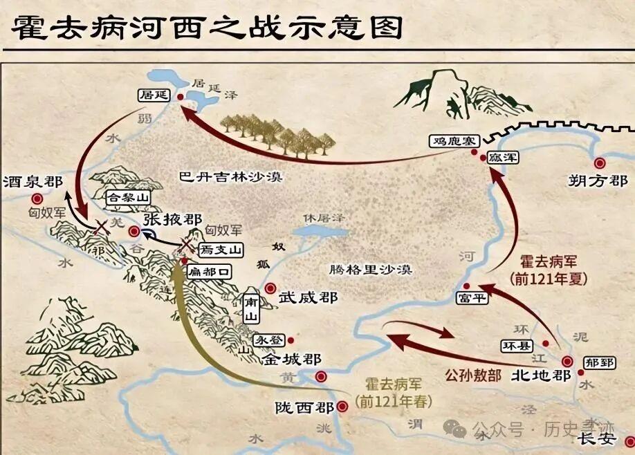 公元前121年,漢武帝派驃騎將軍霍去病遠征河西,大敗匈奴,自此,河西走廊正式納入中原王朝版圖;隨後漢武帝在此依次設立了“河西四郡”——