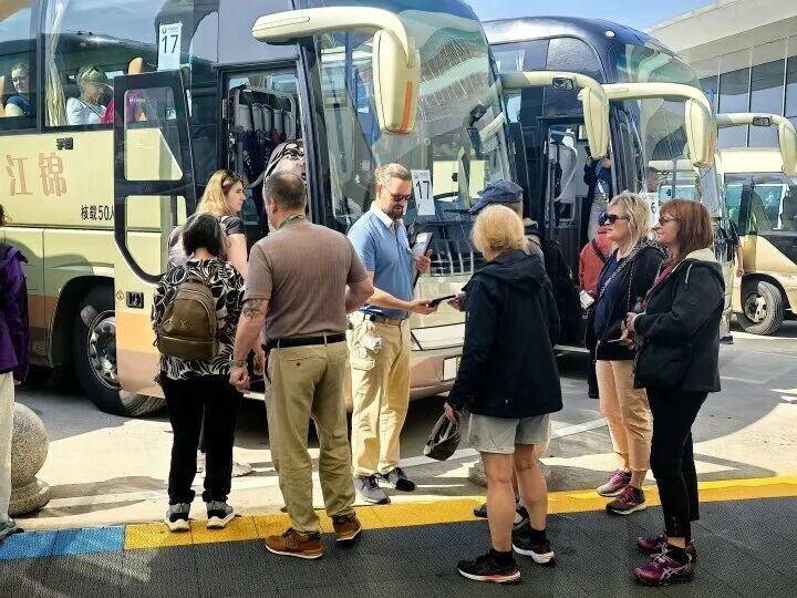 在落地執行環節,中旅旅行充分發揮佈局優勢,從全國各地調集了涵蓋英語、德語、法語、意大利語、西班牙語、葡萄牙語等6個語種的103名導遊組成專業團隊,爲遊客提供服務。同時,中久新行發揮在地優勢,統籌調配149輛旅遊大巴,確保遊覽有序進行。