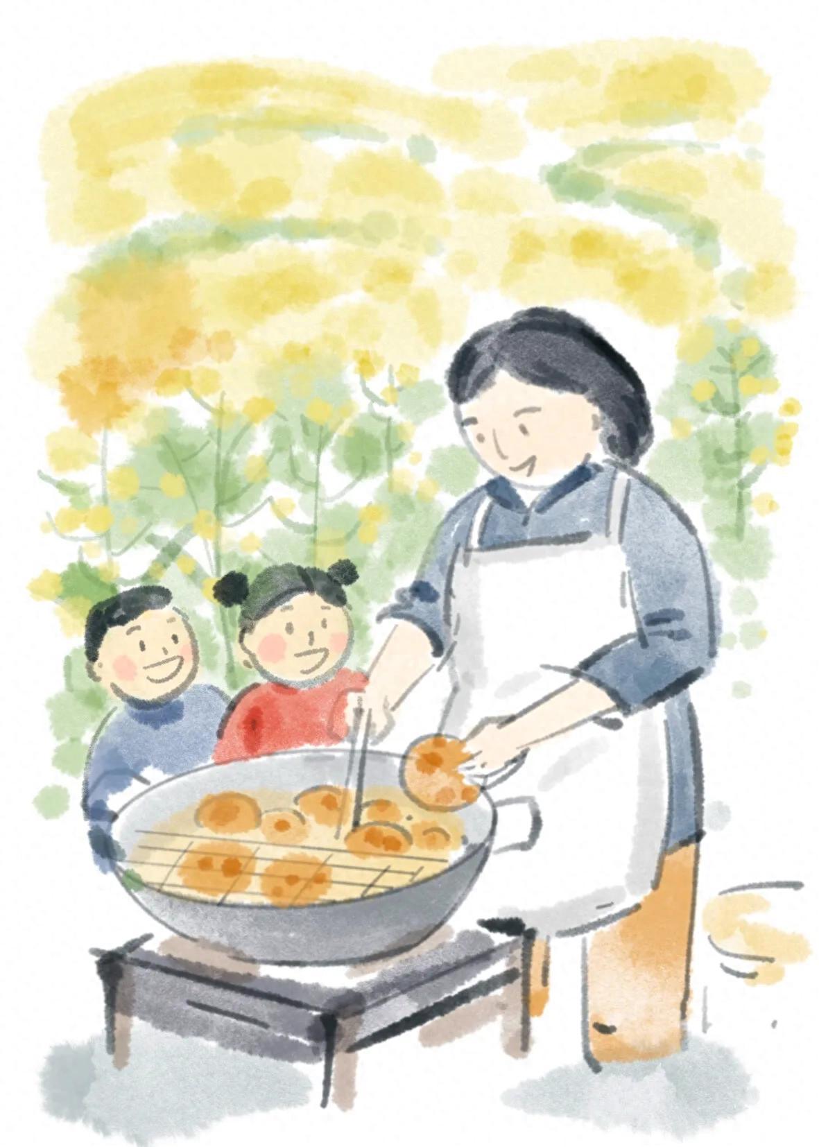 金黃酥脆的油粑粑在鍋裏翻滾,香氣四溢,我忍不住拍下視頻發在同學羣裏。不一會兒,羣裏熱鬧起來,異地的同學紛紛留言,稱隔着屏幕便聞到了熟悉的香味。其中有一位綽號叫“24個油粑粑”的同學,更是感慨萬千。一起上學的時候,每逢趕場,我們總愛跑到街上打牙祭。那時因家境清貧,又正值長身體的年紀,十八九歲的他,一次趕場竟一口氣喫下24個油粑粑,從此便有了這個綽號。如今身在遠方,油粑粑早已成了他夢裏的鄉愁滋味了。