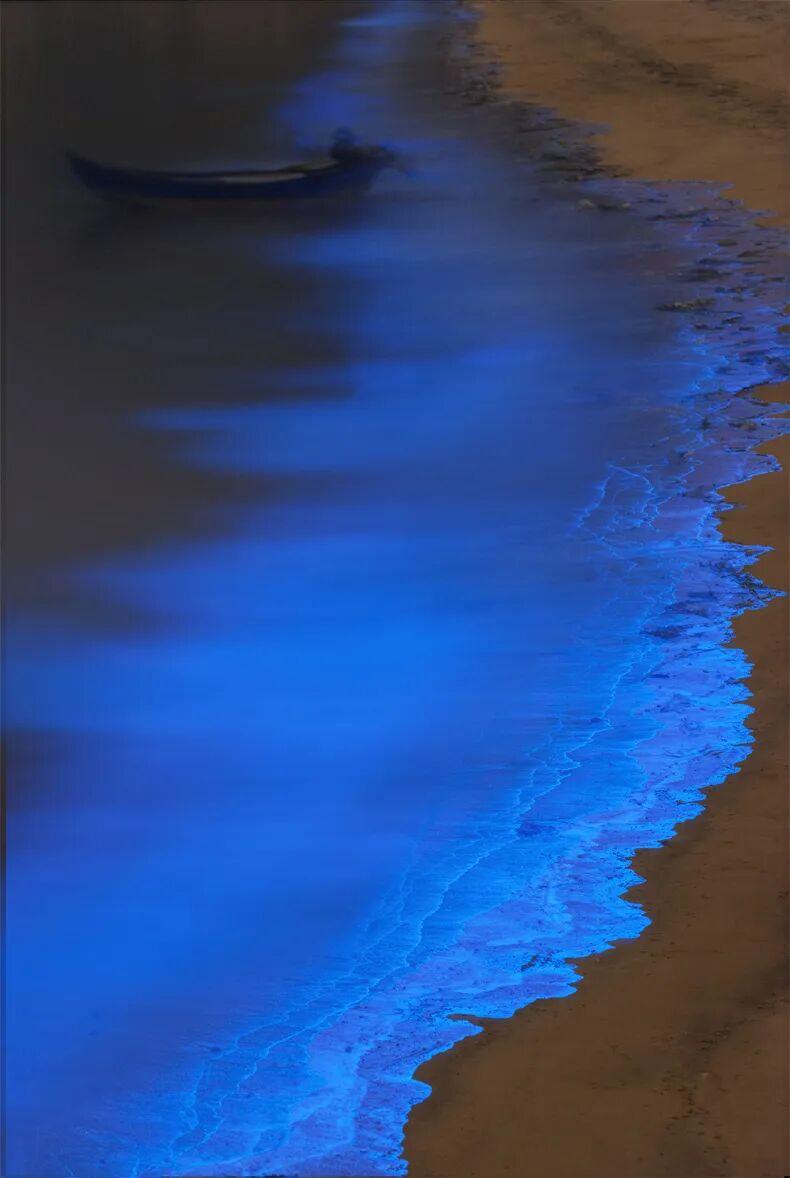 藍色的熒光隨海浪湧動,