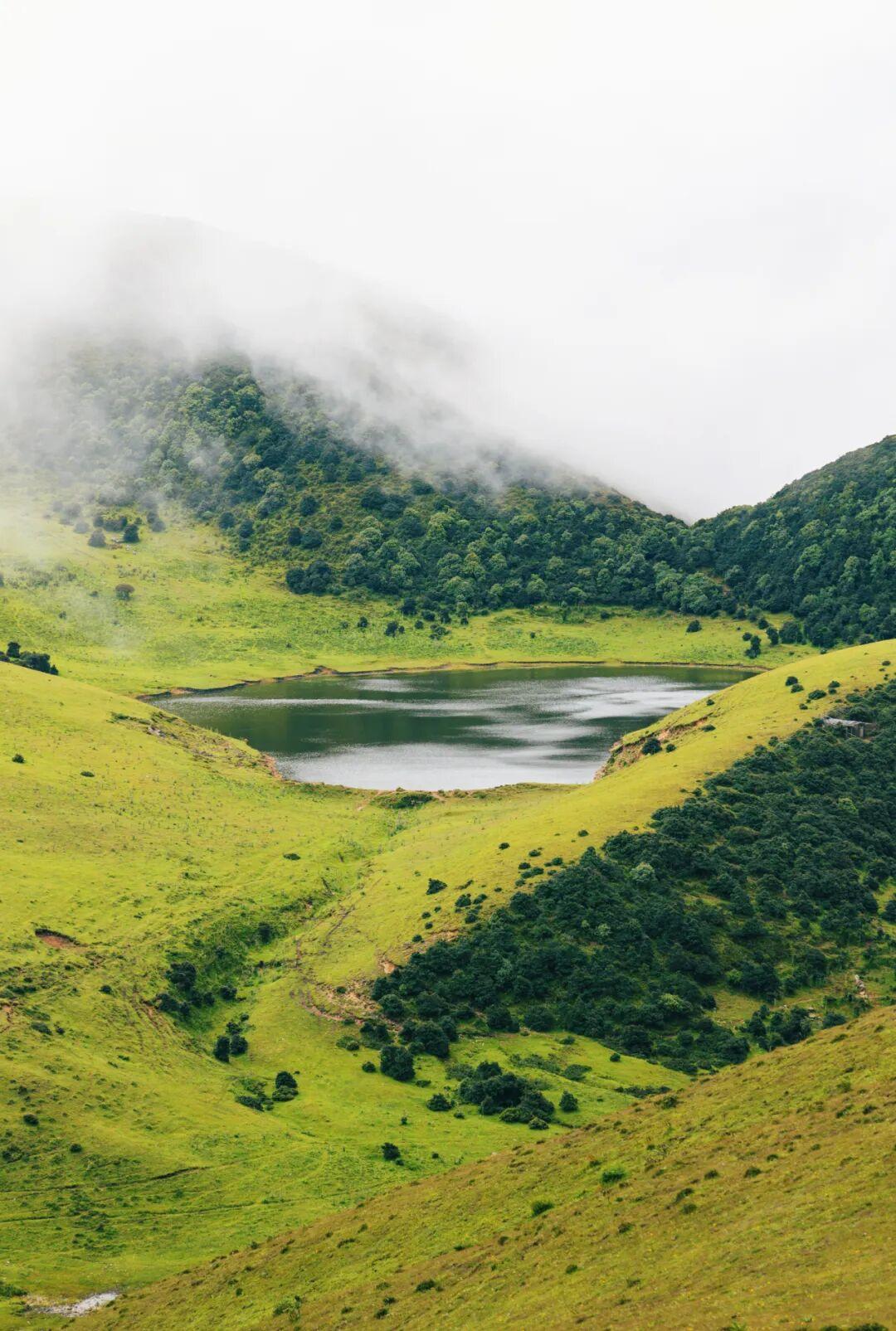 一池碧水藏在羣山之間,