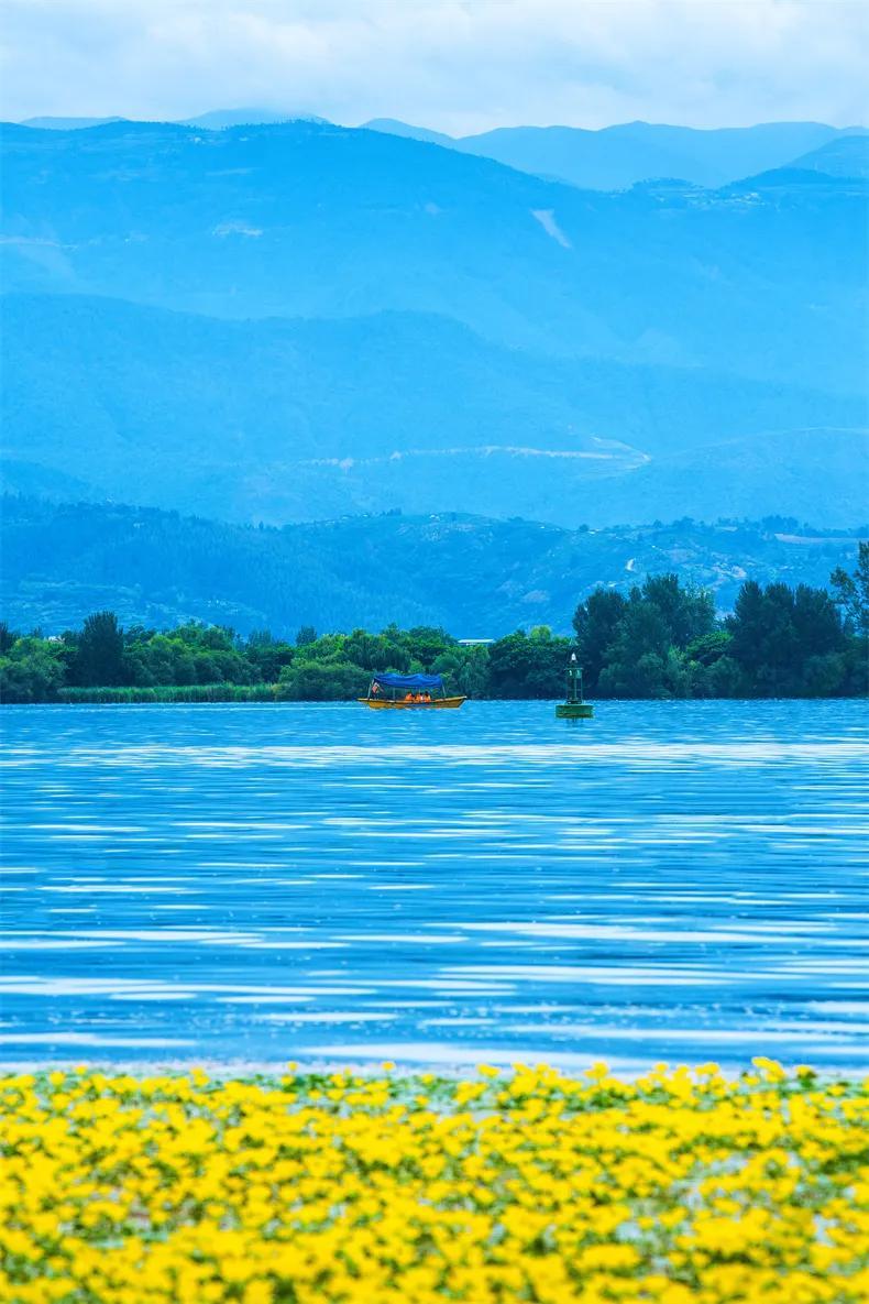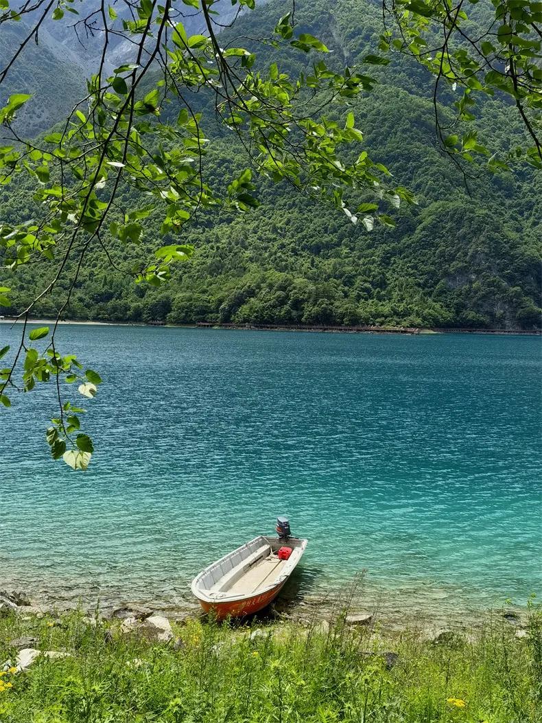 4月山花爛漫,湖水清澈見底。
