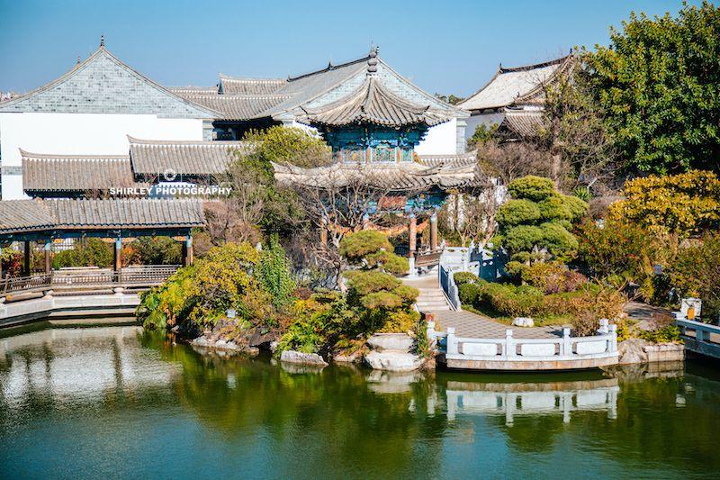 它完美融合了江南園林的精巧與滇南民居的厚重,分爲住宅、花園、祠堂三部分,園內亭臺樓閣、小橋流水、假山怪石一應俱全,讓人眼花繚亂。走進朱家花園,彷彿走進了江南的大戶人家,庭院深深曲徑通幽如同一座迷宮,水上戲臺、雕花門樓、名人書畫,處處透着江南園林的精緻風雅。