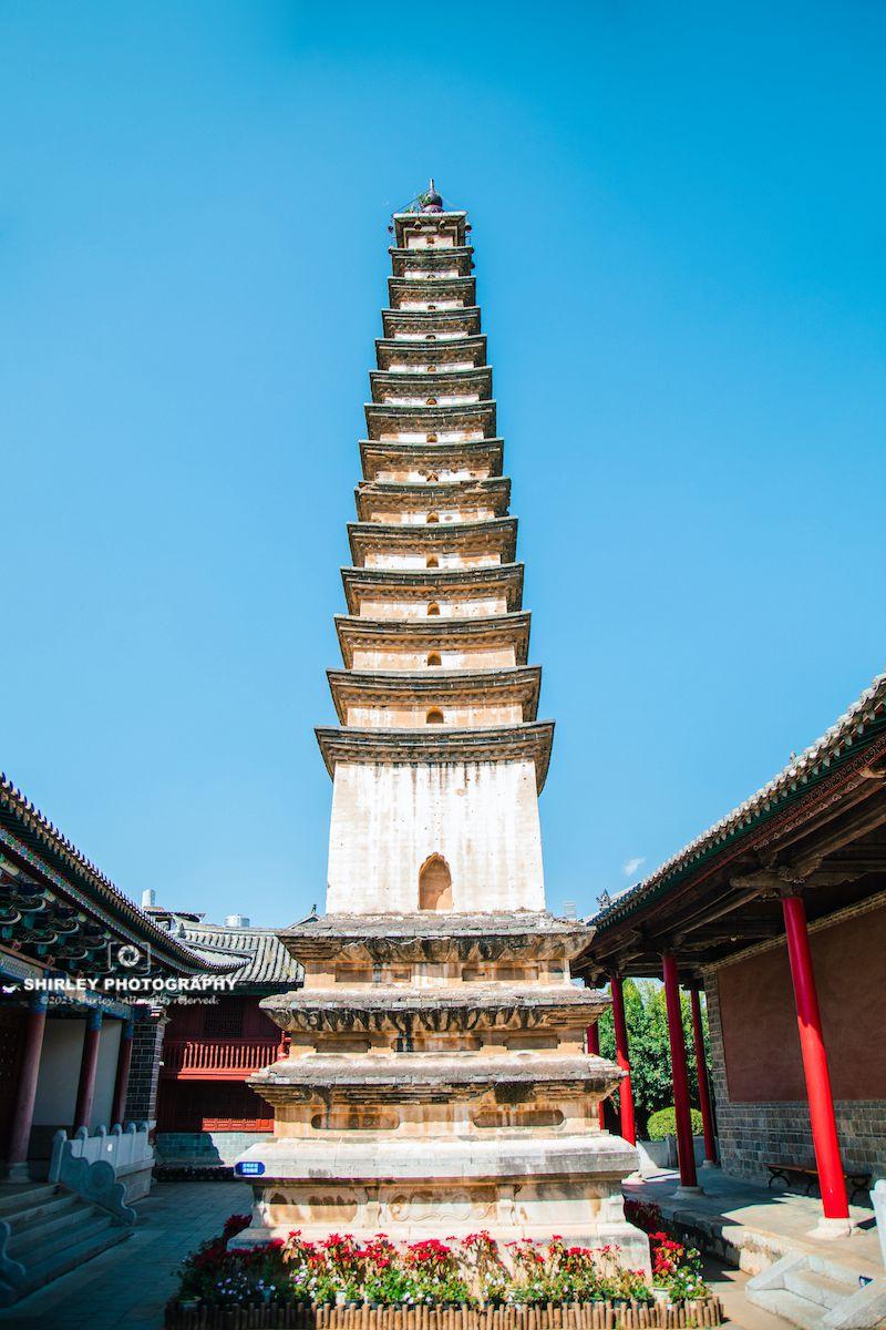 崇文塔與玉皇閣的古雅殿宇相映成趣,佛道兩教在此交融共生,組成了古城獨特的天際線。
