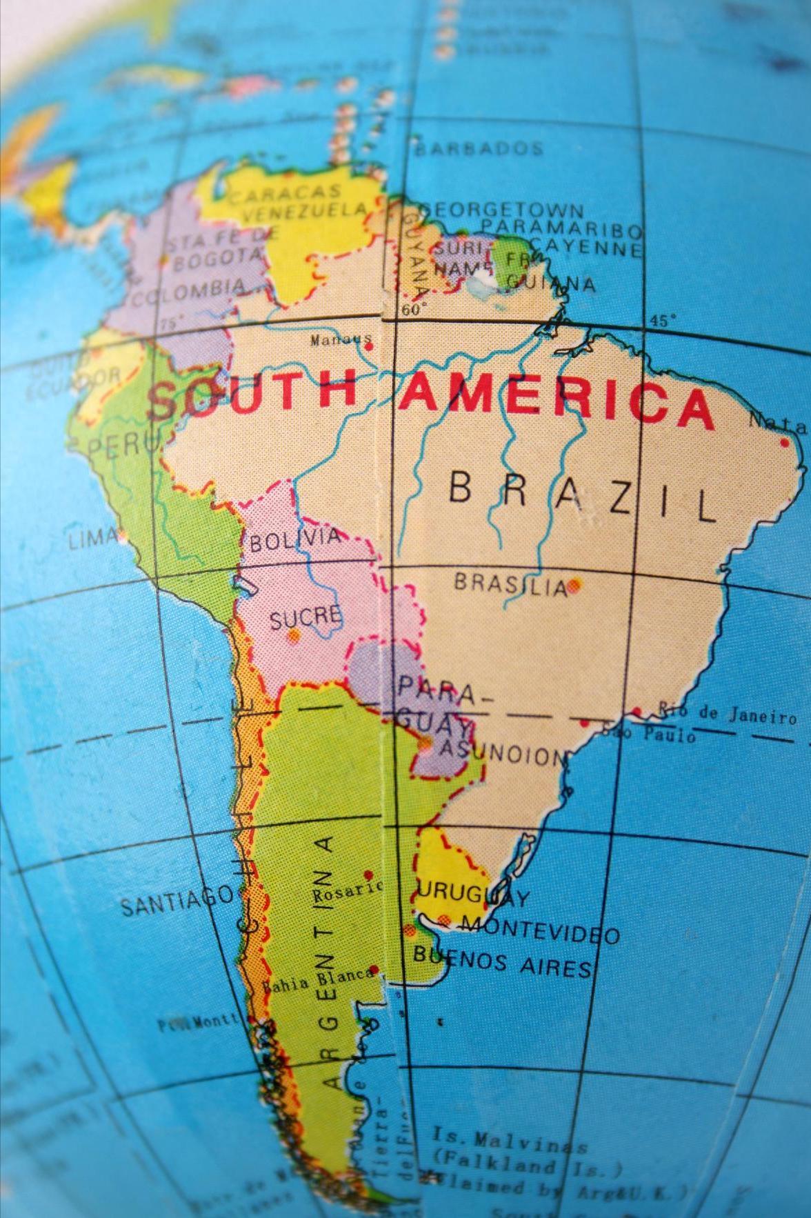 南美大陸,世界第四大洲,約佔全球陸地總面積 12%,其上有 12 個主權國家,外加 1 個海外屬地(法屬圭亞那,法國海外省)。