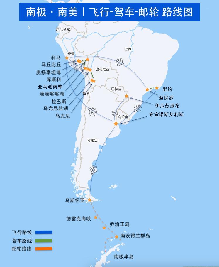 一直以來,國人遊南美四國多以飛機實現,常常是20多天的行程就要坐差不多18趟飛機,基本上就是三天兩趟飛機。
