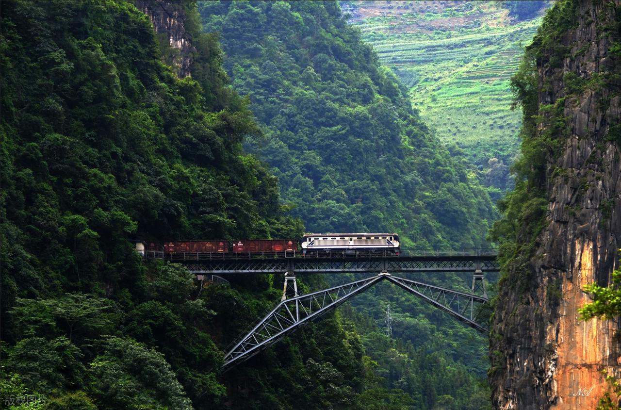 滇越鐵路顧名思義,是從中國昆明至越南海防的跨國鐵路。越南段長389千米。因地勢相對平坦便於施工,僅用2年便竣工通車;但云南段長465千米,修建卻用了6年之久。因爲雲南段鐵路需要穿行在崇山峻嶺、懸崖絕壁之間,施工難度逆天。全線開鑿了172個隧道,修建了3682座橋樑,隧道和橋樑的長度加起來佔了全線一半以上。其中最艱險的“人字橋”更是與趙州橋一起,被載入《世界名橋史》。