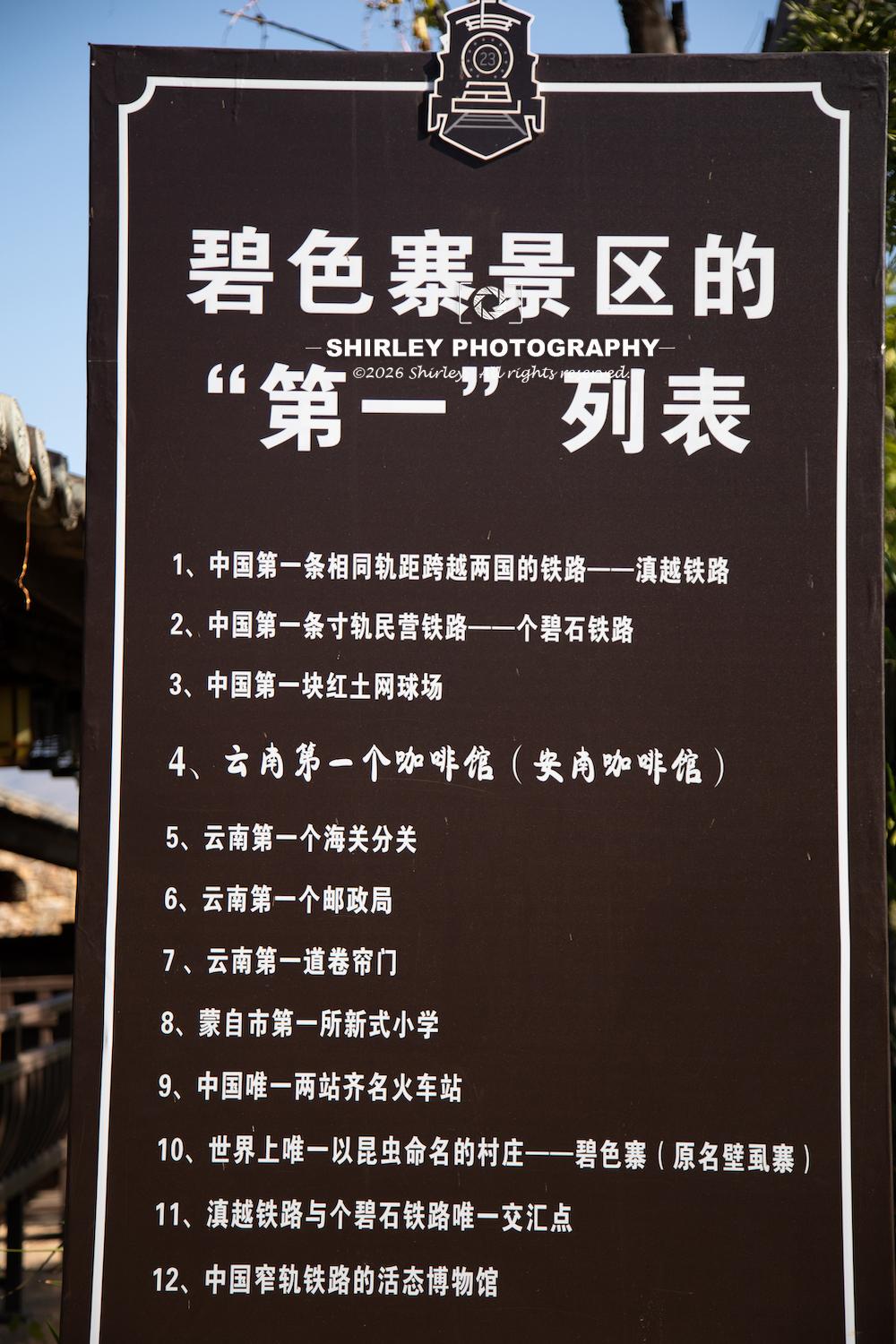自從電影《芳華》在這裏取景後,碧色寨就成了蒙自旅遊的頭號景點。其實這裏遠不止拍照上鏡的黃牆紅瓦,太多值得細看的東西藏在深處。比如車站邊有一塊牌子,細數了碧色寨各種“第一”。
