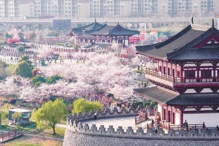 近期,河南省多地櫻花盛放,引來衆多市民遊客踏青賞花。“瀍壑朱櫻”是洛陽八小景之一,洛陽市在瀍河兩岸種植了多個櫻花品種,重現“朱櫻不少見,瀍壑盡陽光”的美景。圖爲近日市民遊客在“瀍壑朱櫻”景點賞花打卡。視覺中國 供圖