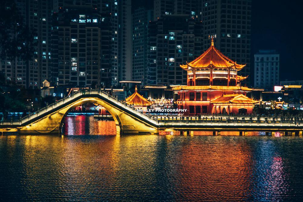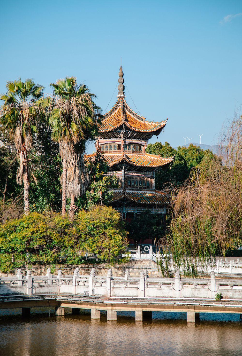 南湖作爲蒙自的城市綠肺,湖畔垂柳成蔭,亭臺水榭、曲橋迴廊,景緻悠然。瀛洲亭立於湖心,過橋米線的傳說也誕生於此。