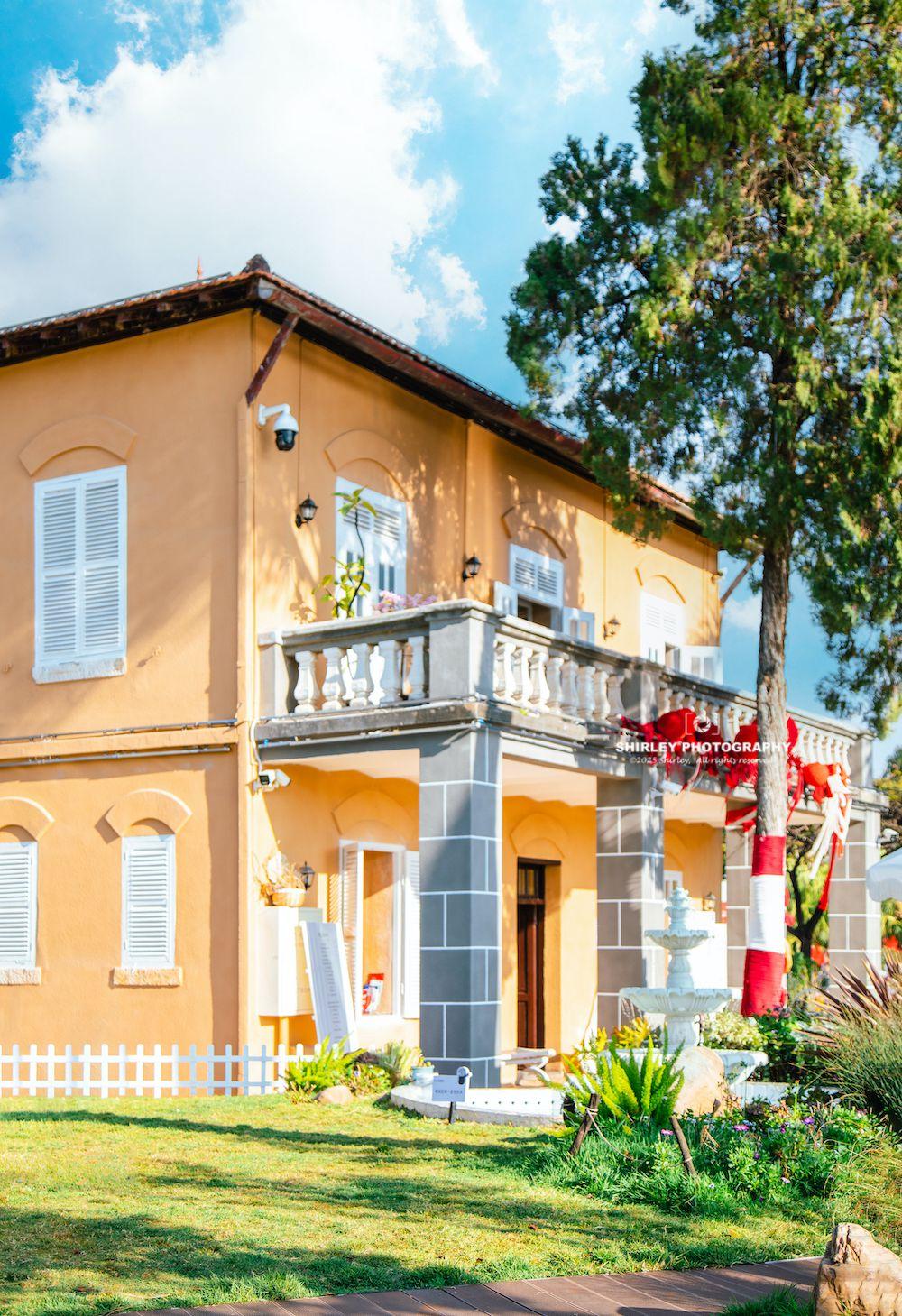 法國花園,與先鋒書店隔湖相對。百年法式小樓,它最初是意大利駐蒙自領事館,後來成爲滇越鐵路總局所在地,蒙自人更習慣性地稱呼它爲“法國花園”。黃色老洋房配草坪、噴泉,景緻旖旎,滿是法式浪漫。