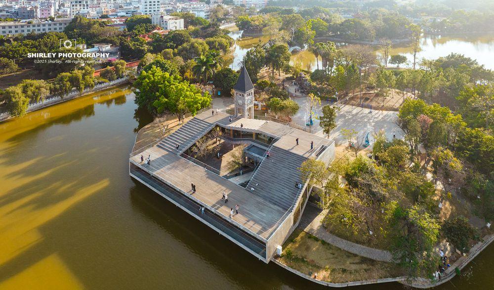 西南聯大先鋒書店,建築師張軻設計的文化地標,堪稱雲南最美書店之一。建築三面環湖,半吊腳樓設計,西式鐘樓,把法式浪漫與文藝書香結合到極致。