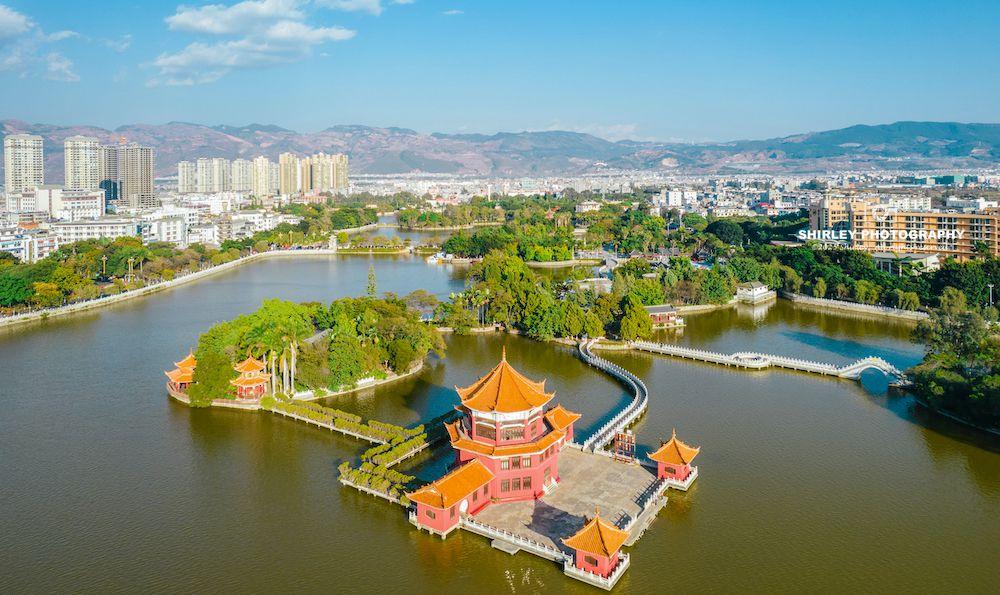 由於這些景點分佈在南湖各處,最後不妨逛一下湖光山色的南湖公園,爲一天的漫遊畫上圓滿句號。一座城市,城中有湖,必然有靈性。而湖的周邊一定是這座城市最美麗的地方,蒙自的南湖也是。