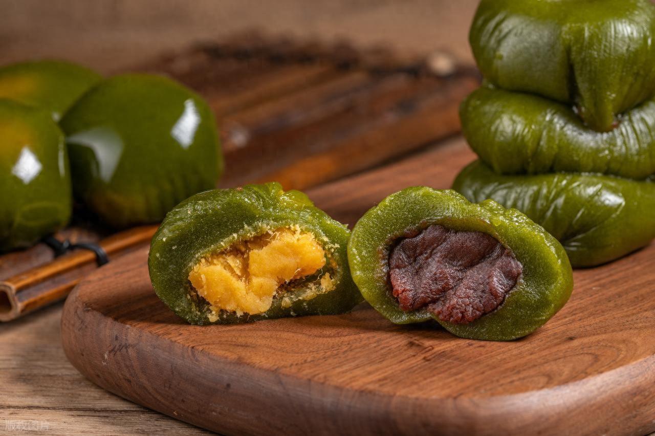 開始品嚐了,咬一口,軟糯到極致的綿,還有那份經由千百次搓揉而誕生的、恰到好處的筋道,在齒頰間溫柔地化開,又纏綿地黏着。滾燙的豆沙或芝麻餡恰逢其時地溢出,濃郁的甜香裹着豐熟的糯香、清醇的艾香,在味蕾間起伏遊弋,如坐溪邊聽雨,別有一番滋味。