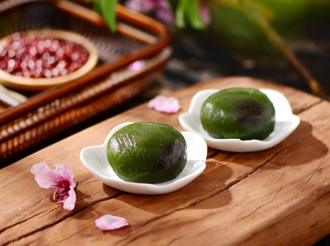 清明喫青團,是江南的傳統習俗。清代袁枚在《隨園食單》裏就有做青團的記載:“搗青草爲汁,和粉做團,色如碧玉。”如今,江南人家多用艾草做青團。艾草性陽,清明食其嫩芽,既鮮嫩不苦澀,又可祛溼驅寒。