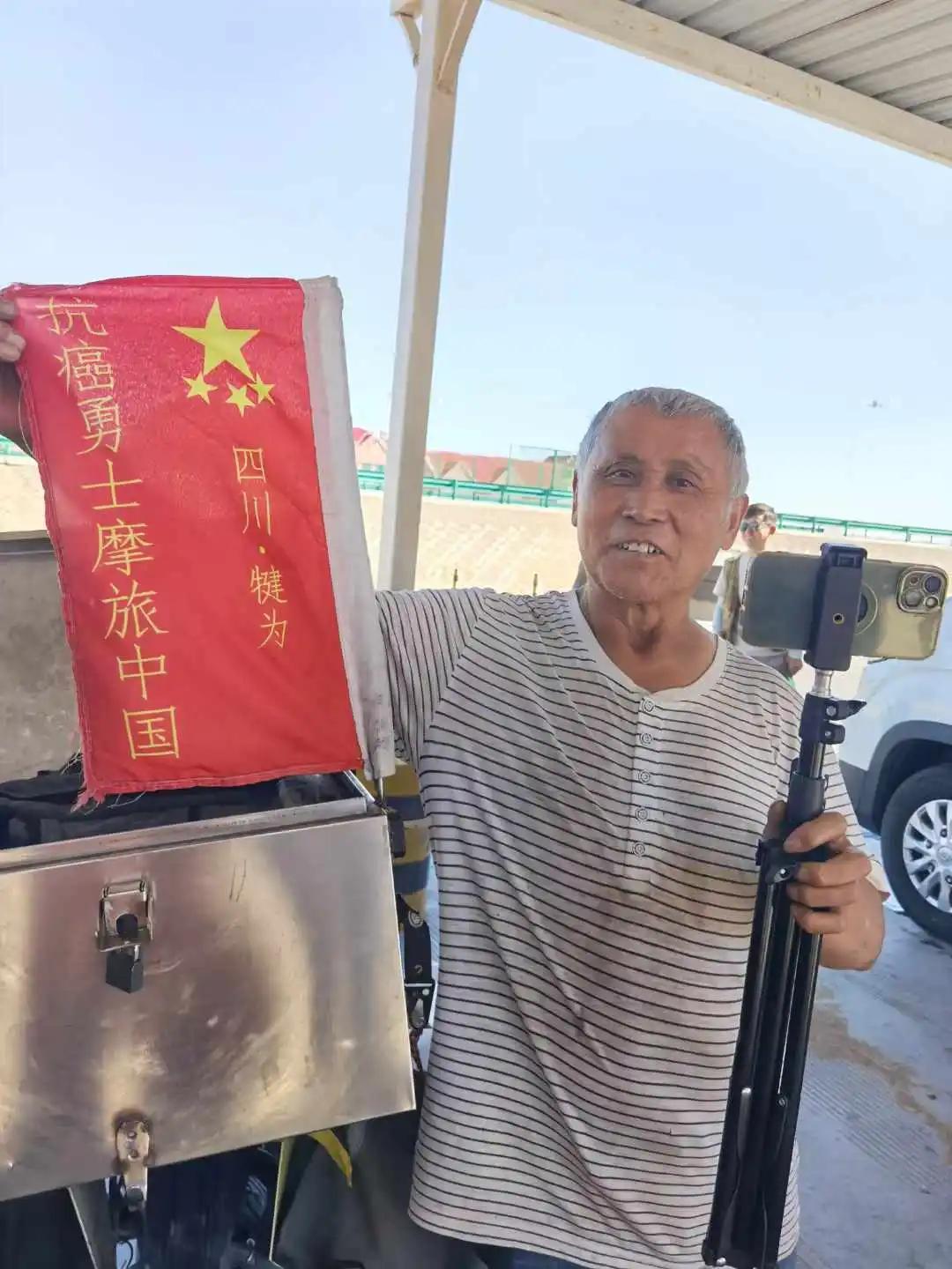 此圖爲:在京新雅幹服務區,偶遇一位70歲老人騎摩托走G311