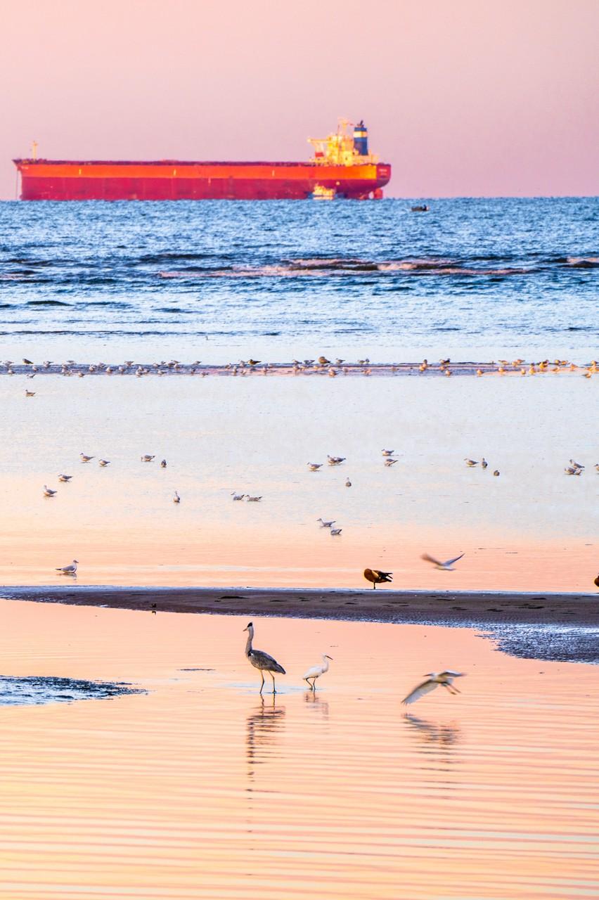 4月的秦皇島,春意正濃,海鷗在碧波間翱翔,金色的沙灘上陽光溫和而不灼熱。
