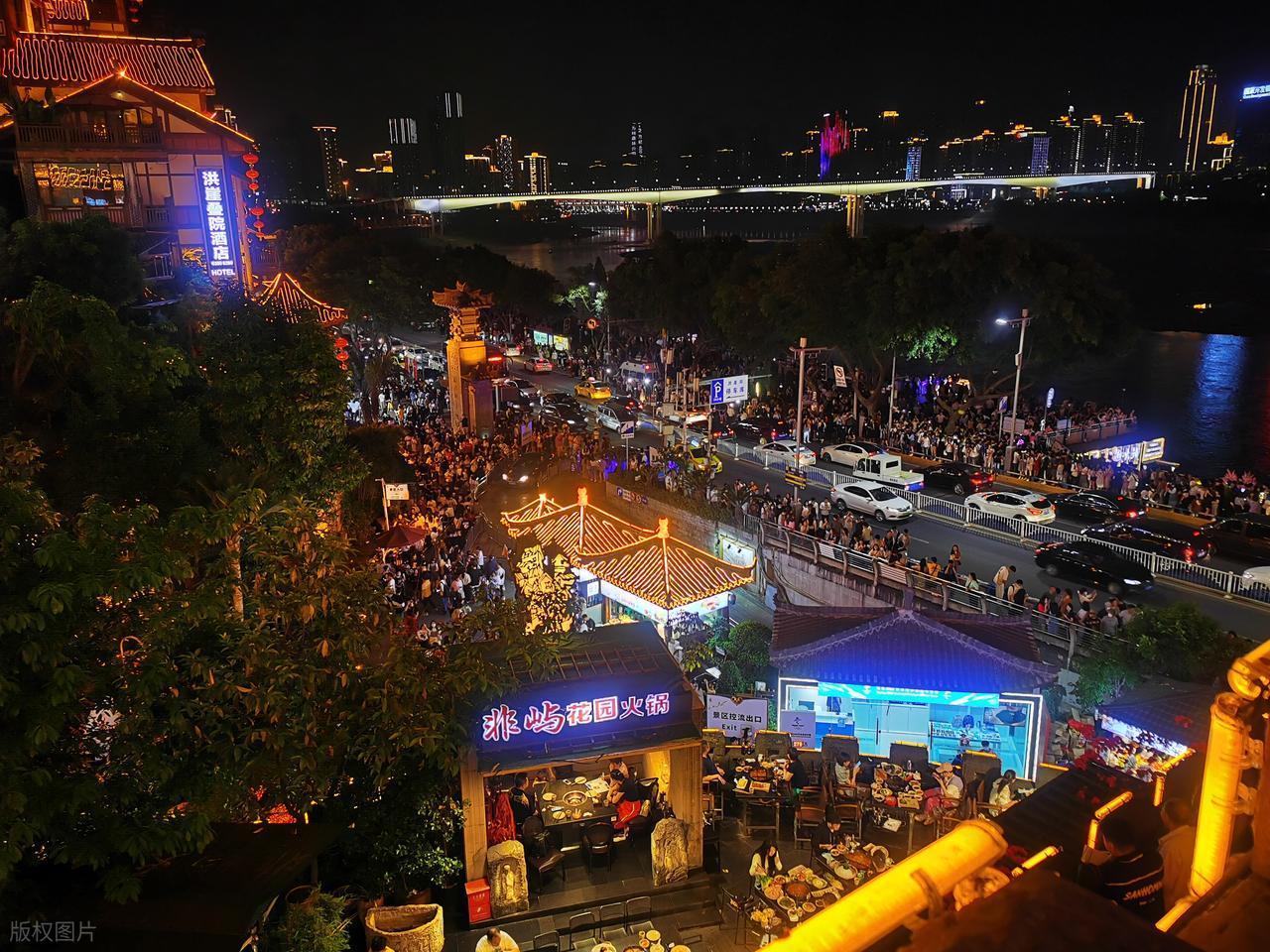 重慶的夜晚,是一場永不落幕的美食盛宴。無論是街邊熱氣騰騰的九宮格火鍋,還是江湖菜館裏的麻辣鮮香,都是最吸引人的夜間煙火。在觀音橋好喫街這樣的美食聚集地,1000多種小喫讓人流連忘返,即便在深夜12點後,這裏依然人聲鼎沸,熱鬧持續到凌晨;把火鍋開進防空洞,是重慶獨有的浪漫,比如“地下之城”防空洞火鍋,在清涼的洞穴裏涮着滾燙的火鍋,將“8D魔幻”的飲食文化展現得淋漓盡致。