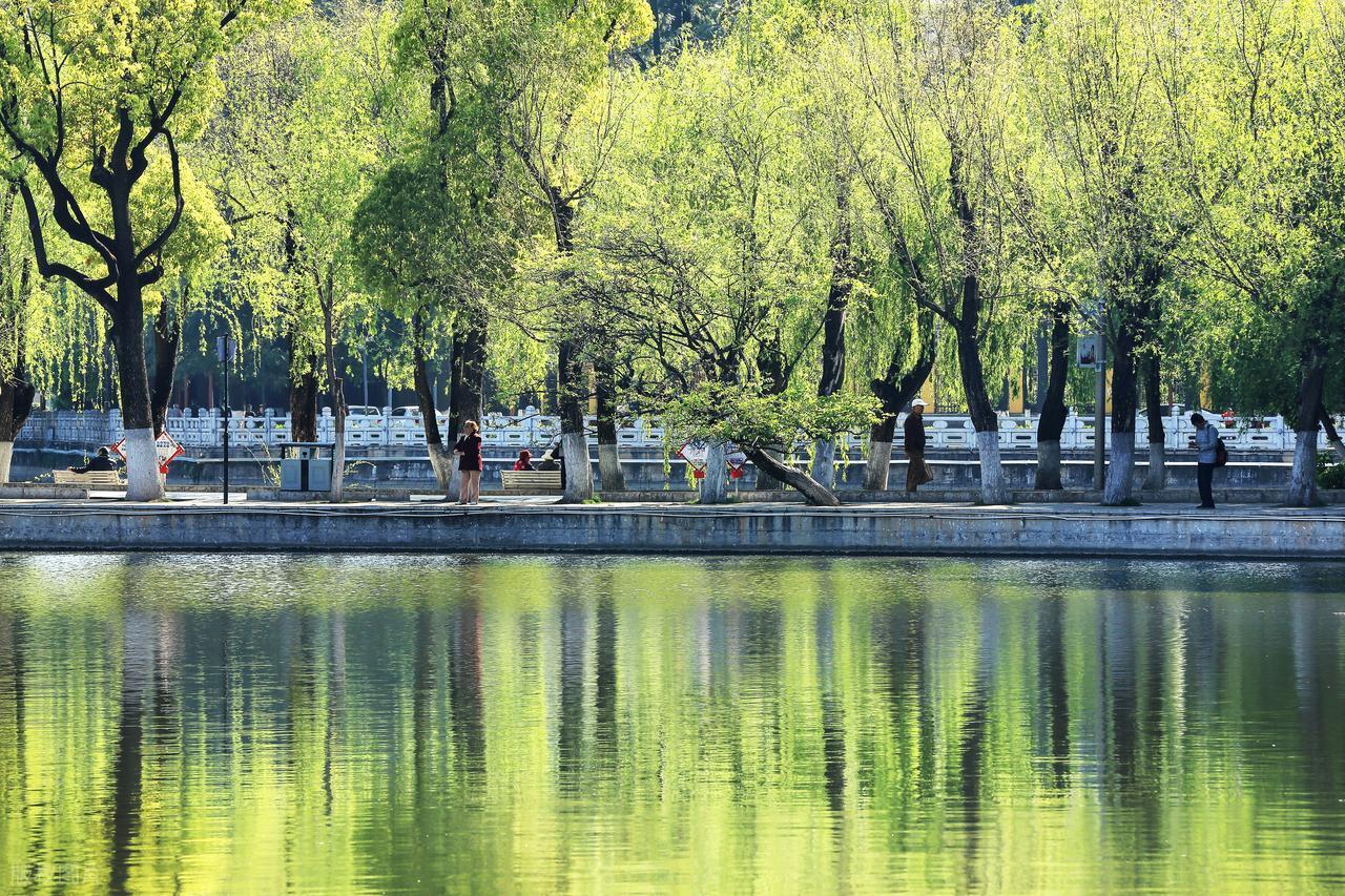 翠湖靜臥在五華山西麓,與螺峯山、祖遍山構成“三山一水”的格局,像一泓碧玉鑲嵌在昆明的城心。我是在瞭解這個地方聚集着這座城一半多的歷史底蘊後,突然讀懂了汪曾祺筆下的“眼睛”所言何意。那不是單純看風景的眼睛,更是記錄歷史、看一代代人把日子過成故事的眼睛。在湖邊,在柳蔭下漫步,腳步緩行處,你會恍惚走進翠湖的歷史深處。耳畔,像是有馬的嘶鳴聲,那是明洪武十四年(公元1381年),沐英遠征雲南,平定雲南後在翠湖西岸建柳營的豪情與快意。
