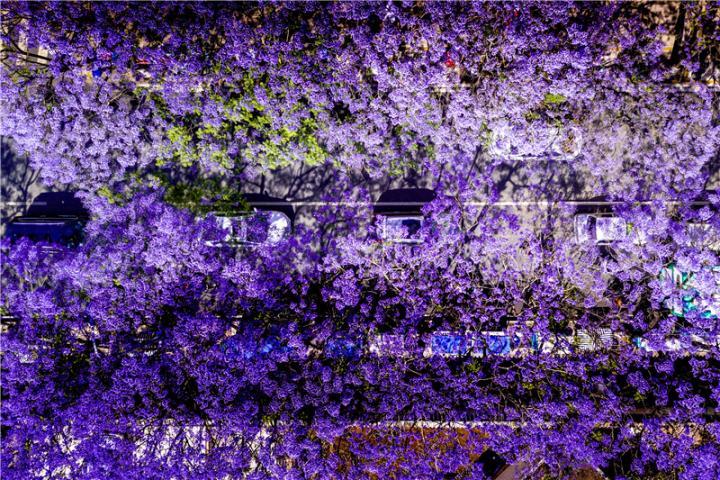 4月10日至5月10日,昆明五華區第八屆藍花楹藝術節開展,前衛西路3.6公里藍花楹花香與咖啡香、藝術氣息交融。本屆藝術節期間推出文創集市、主題音樂節等活動,還創新推出“滇中三地”文旅聯動模式,聯動西雙版納州景洪市、德宏芒市,構建“喫住行遊購娛”一體化沉浸式體驗場景,讓遊客盡享春城浪漫。