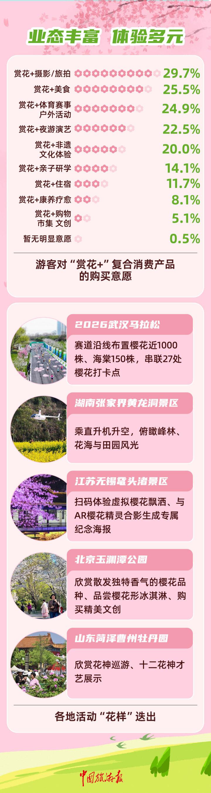 各地創新“賞花+”模式,串聯起多元業態,推動賞花遊從“打卡觀光”向“沉浸式體驗”升級。