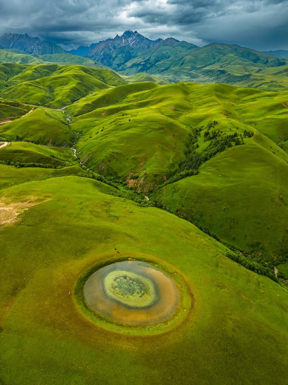 格聶之眼:草原上的圓形海子,形似“大地瞳孔”,倒映雪山,日出日落絕佳