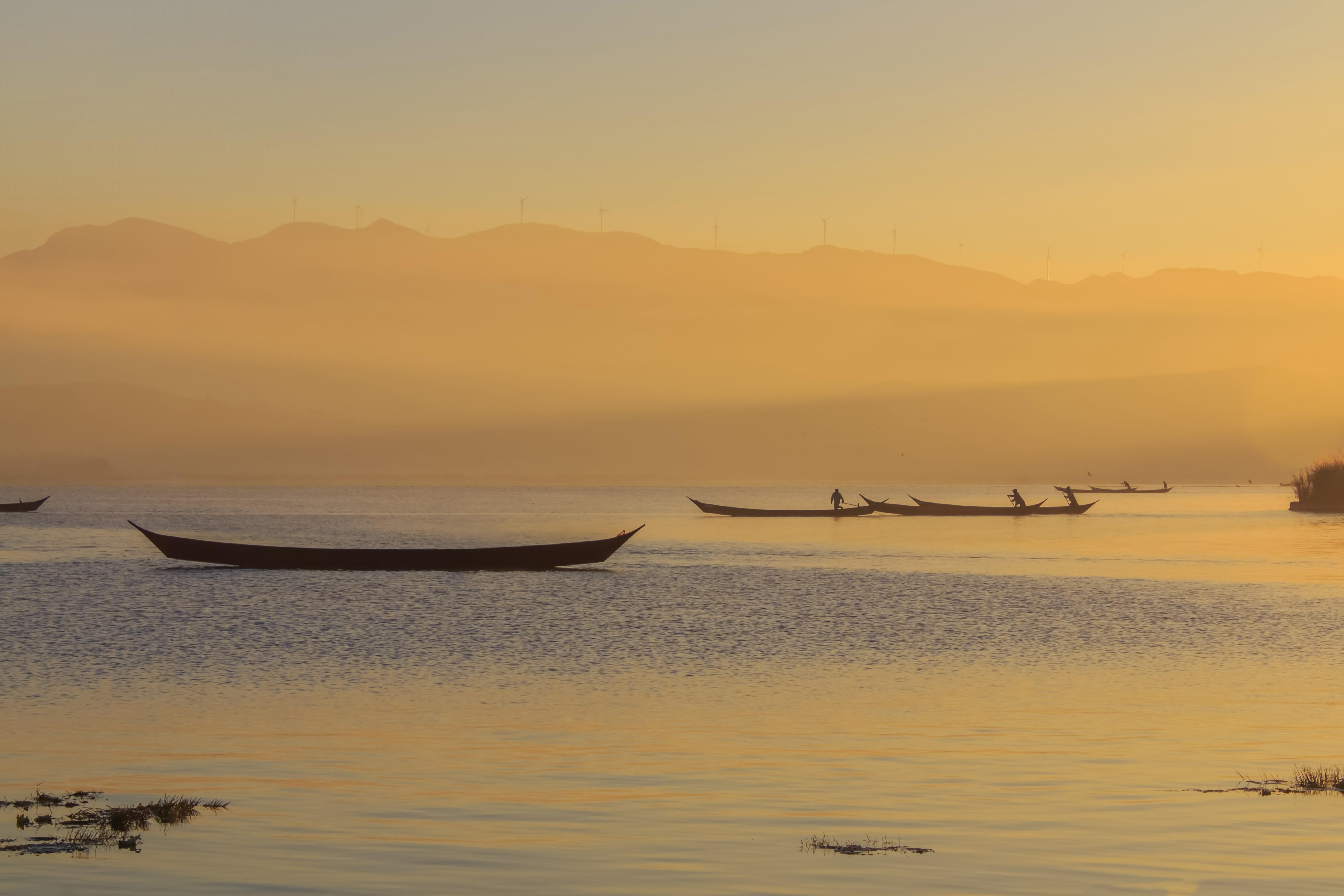 青龍灣:湖水如碧玉,起霧時烏篷船浮於水面,水墨畫意境