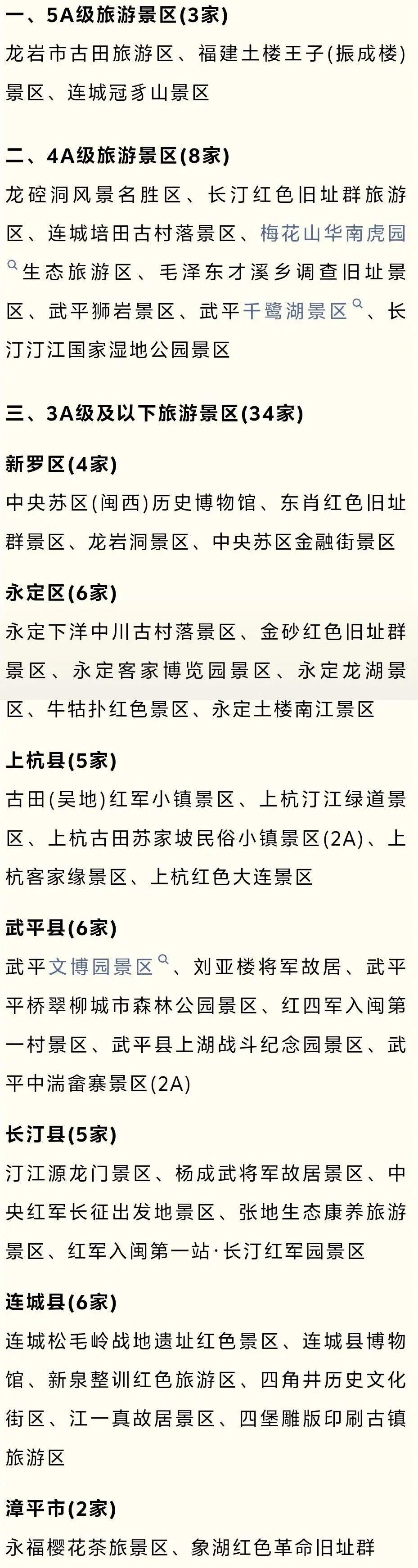 可享龍巖45家國有A級旅遊景區