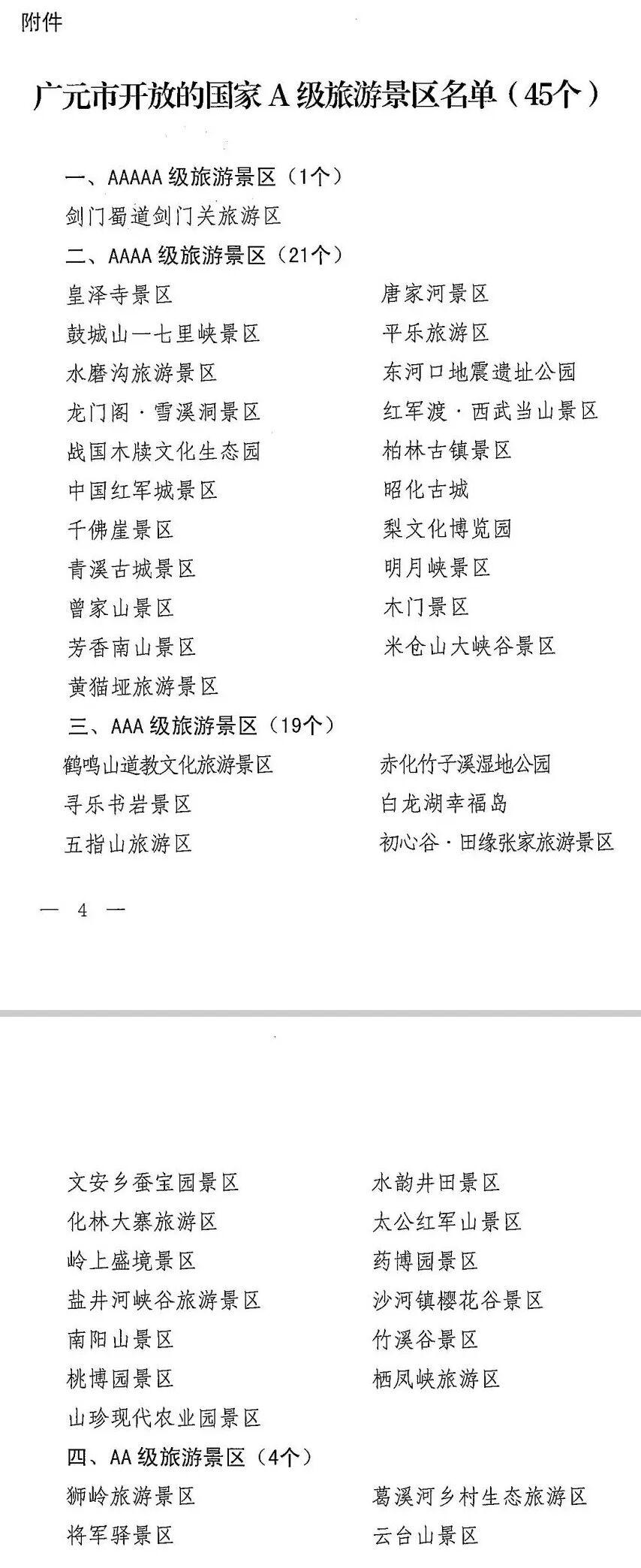 廣元市A級旅遊景區