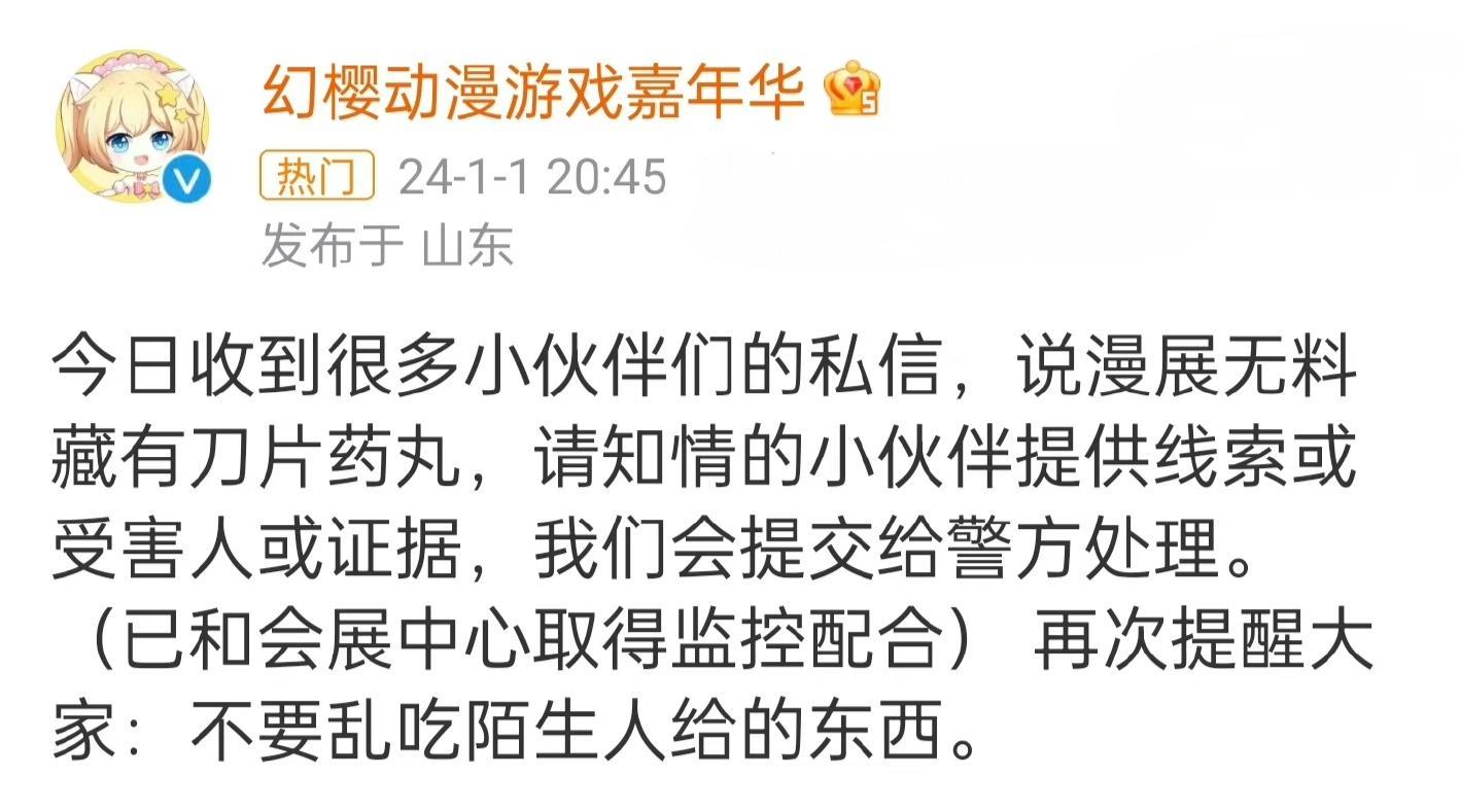 然而,有些人卻利用漫展的機會,將刀片和針頭等危險物品藏在無料中,不清楚他是想要以此爲主題進行炒作和惡作劇,還是惡意進行人身傷害。