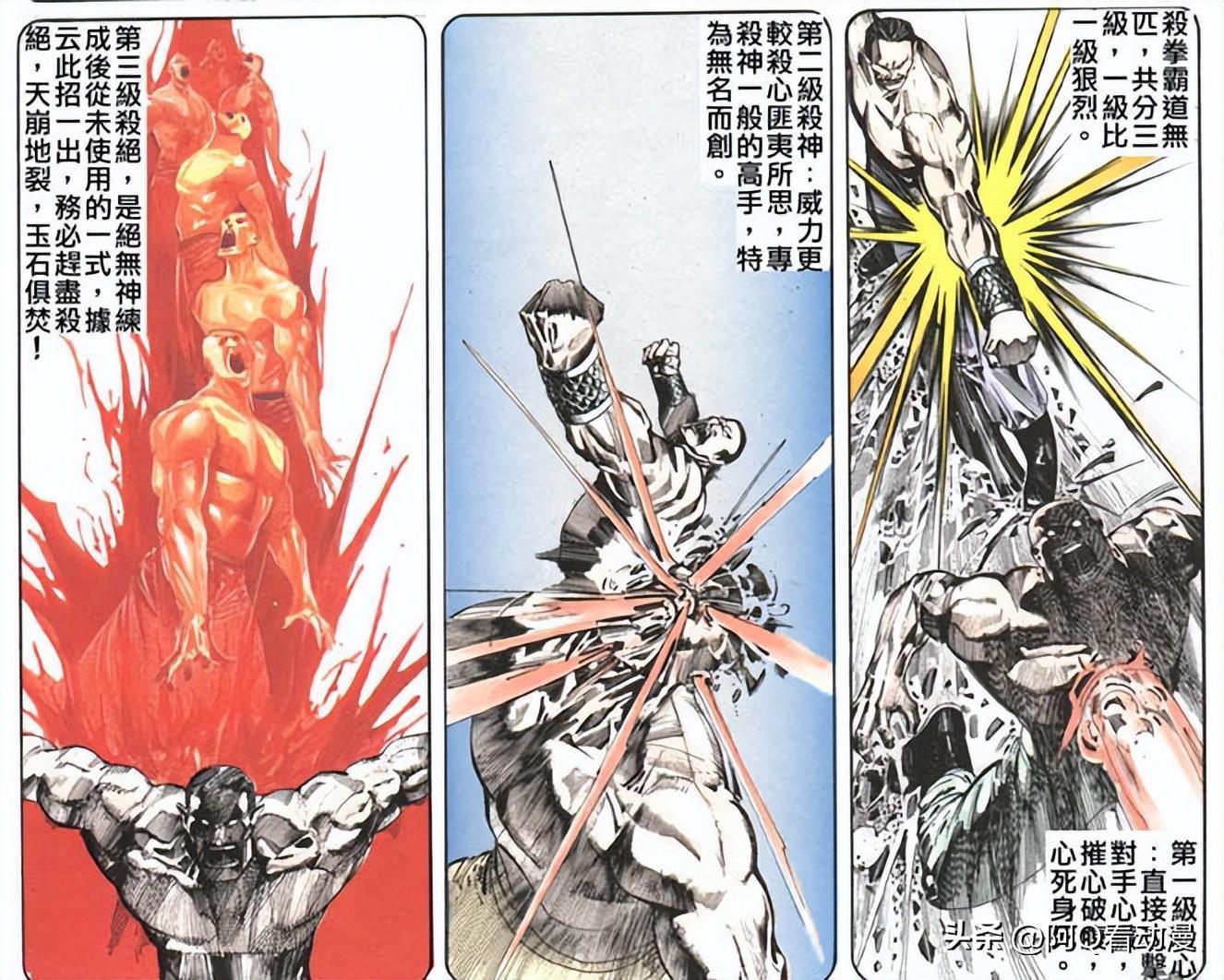 單從招式的名字來看,殺拳毫無疑問是一門非常可怕的武功,然而它在漫畫中的表現卻一言難盡,名不副實,說是必殺之招,但被打中的人最多吐幾口血,完全沒有那種霸道無比,中招必死的感覺,而且這門武功在漫畫中沒什麼存在感,提到絕無神,大家只會想到不滅金身,而不會想到這個所謂的殺拳。
