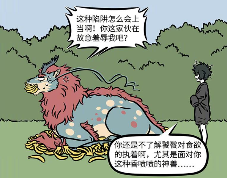 那就是讓麒麟充當誘餌,嘴裏以及身旁都裝滿了香蕉,從而引誘饕餮前來。只是麒麟卻覺得這種小兒科的陷阱,饕餮根本不會上當,反而感覺白澤這傢伙在趁機戲耍自己,故意羞辱自己。但是白澤卻很堅信,因爲麒麟根本不瞭解饕餮對食慾的執着。
