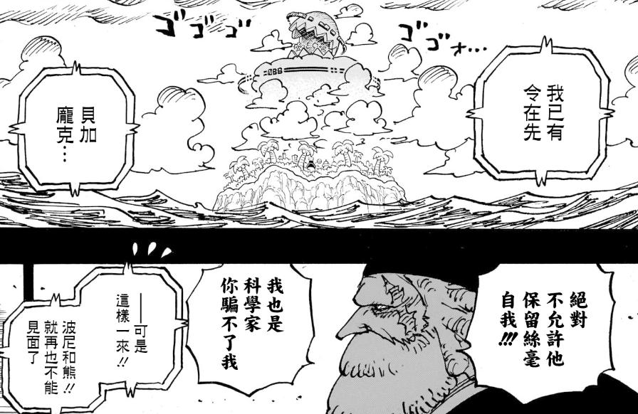 海賊王1104話:薩坦按下自爆程序,貝加龐克留後手,大熊還有的救