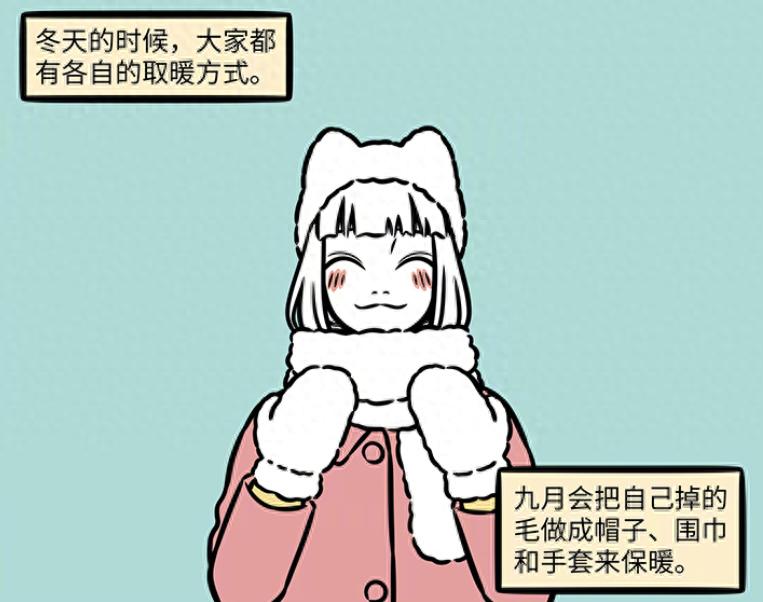 今年的冬天,要比以往更加的寒冷,所以大家也是想盡辦法,給自己取暖禦寒,非人哉的神獸妖怪們也不例外。這不九月的方法就很實用,九尾妖狐不是很容易掉毛,於是九月就把自己掉的毛給收集起來,然後做成帽子與圍巾以及手套。要知道用狐毛做成的服飾,保暖性太好了,這個冬天九月是不怕冷了。