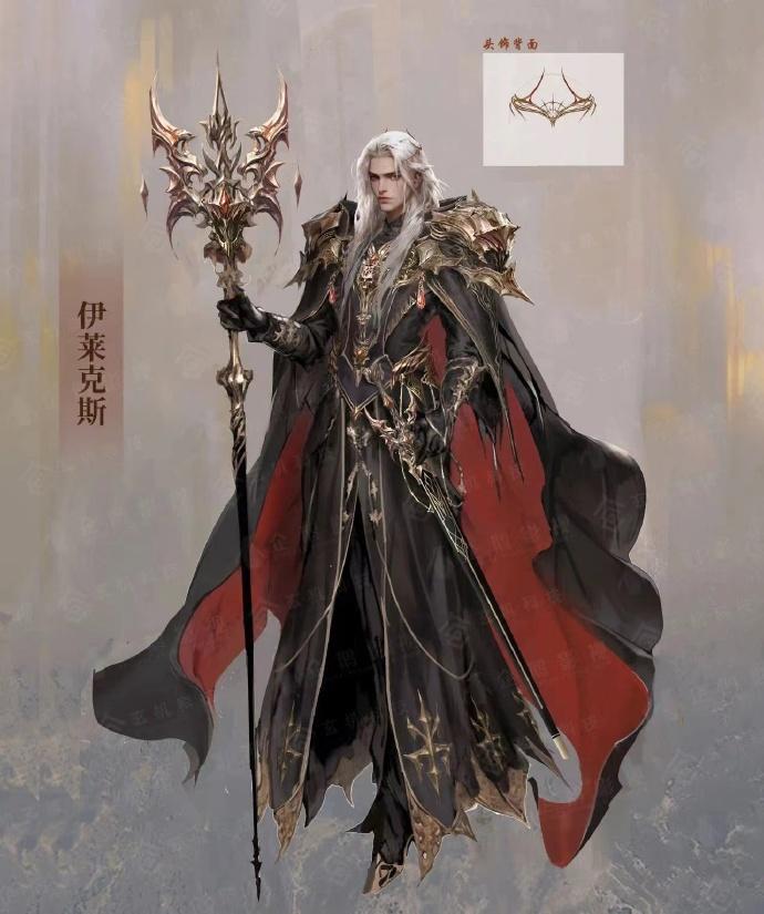 從玄機娘娘曝光的伊萊克斯原畫設計圖來看,一身黑色長袍,搭配金色符文紋路,同時披着外黑內紅配色的寬大長袍,十分質感的材質,增加了神祕感與氣質。一頭白色長髮,完美襯托了臉型,而且還佩戴黃金王冠,散發着上位者的氣息。並且左手握着一柄黑色王者長劍,右手手持一柄黑色神祕權杖,比其身高都要長,並且也穿上了黃金戰甲,外觀看着十分的魁梧壯觀。