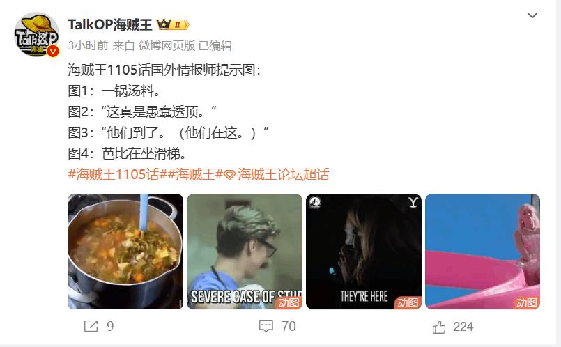 除此之外,情報師也公佈了第三個提示圖,那就是“他們到了(他們在這)”。其實光從字面意義上,就能夠判斷出來,蛋頭島決戰中又有新的勢力參戰了。雖然很多人都認爲革命軍來了,但個人覺得有點懸,畢竟大熊能夠快速抵達,全靠肉球果實能力,而革命軍要是率領大部隊到來,還得穿越紅土大陸,難度着實很大。