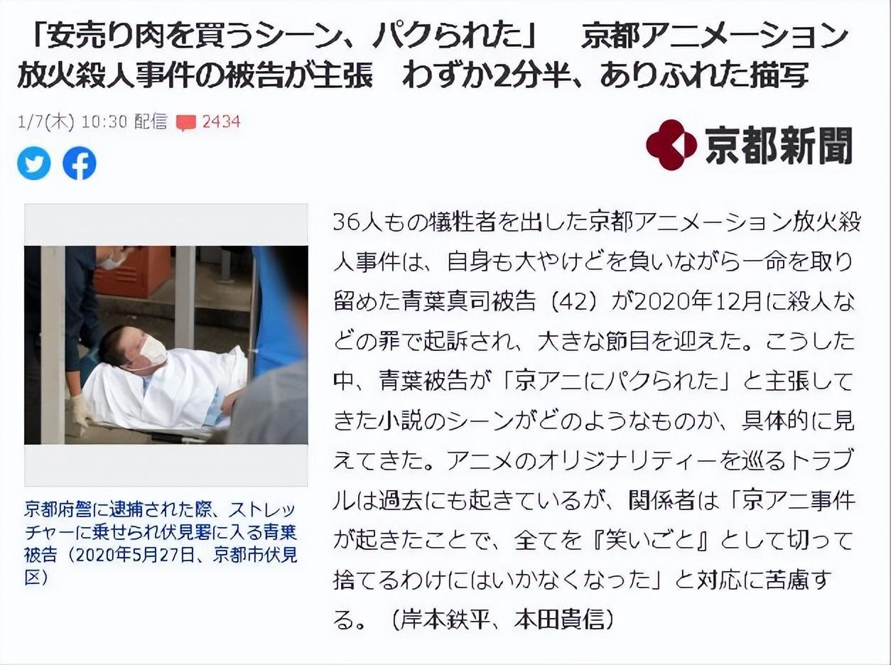 根據相關日媒報道,青葉真司向京都公司縱火的原因,竟然是因爲他覺得,京都動畫公司剽竊了他的作品。