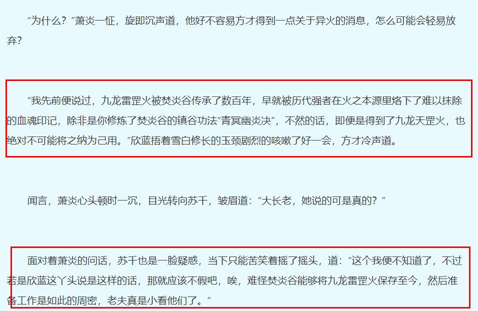 在原著中,蘇千大長老就告知了焚炎谷的九龍雷罡火,異火榜排名十二,比隕落心炎還高。只是九龍雷罡火是焚炎谷的命根子,如果蕭炎想搶奪的話,肯定會結下不死不休的仇恨。但蕭炎沒有辦法,爲了解救藥老與父親,即便不合道義,也準備搶一下九龍雷罡火。
