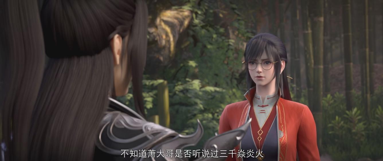 好在是葉欣藍的出場,讓蕭炎打消了念頭,因爲九龍雷罡火早就被種下血魂印記,即便被人搶走了,如果未學習青冥幽炎決,也無法納爲己用。隨後葉欣藍便帶來了三千焱炎火的消息,並且雙方達成了合作,蕭炎將當上門女婿,幫葉家重回丹塔長老席位。可惜動畫中,把九龍雷罡火的戲份全給刪沒了,只留下了三千焱炎火。除此之外,蕭炎在給天妖凰屍體分屍與煉製骨翼的過程中,同樣刪減了紫妍的指揮,僅保留了紫妍獲得拳套戲份,而且把天妖凰魔核也給刪沒了。
