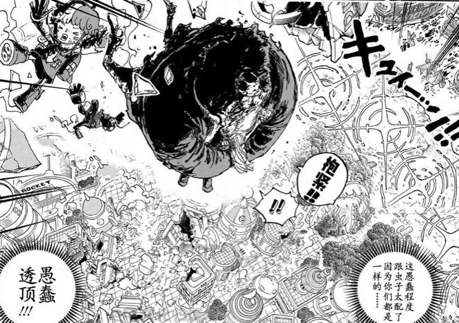 其實在上一話中,大熊與波妮以及阿特拉斯他們面臨着一個重大危機,那就是在貝加龐克牽制住土星薩坦,對屠魔令進行爭執的過程中,山治掩護阿特拉斯帶着大熊與波妮,乘坐真空火箭,從地面的工廠層飛到雲端的研究層。結果海軍大將黃猿不講武德,直接一招天叢雲劍,就砍斷了真空火箭,讓大熊波妮掉落。