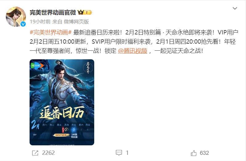 本來天命永絕特別篇提前上映,這是一個天大的好消息。但是也伴隨着壞消息,因爲並非是所有人都能夠觀看,而是設置了一定的限制門檻。從官方動態消息來看,普通會員無法提前觀看,只能等到2月2日上午十點如約播出之後,才能進行觀看,要是想要提前一天觀看,只能是會員再度升級,也就是升級爲SVIP,纔算有資格可以暢快的提前觀看。
