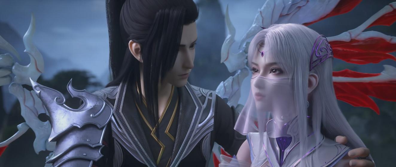 自從小醫仙與蕭炎重聚相認之後,動畫就一直刻意隱藏他們倆之間超越朋友又低於情侶的情愫,甚至刪減了蕭炎的捧臉殺,以及毒池療傷的曖昧戲份,可以說,兩個人一直中規中矩,沒有任何的僭越之舉。正當大家以爲動畫這是讓他們走純真的朋友路線之後,沒想到在打地魔老鬼的時候,兩個人終於摟抱了。
