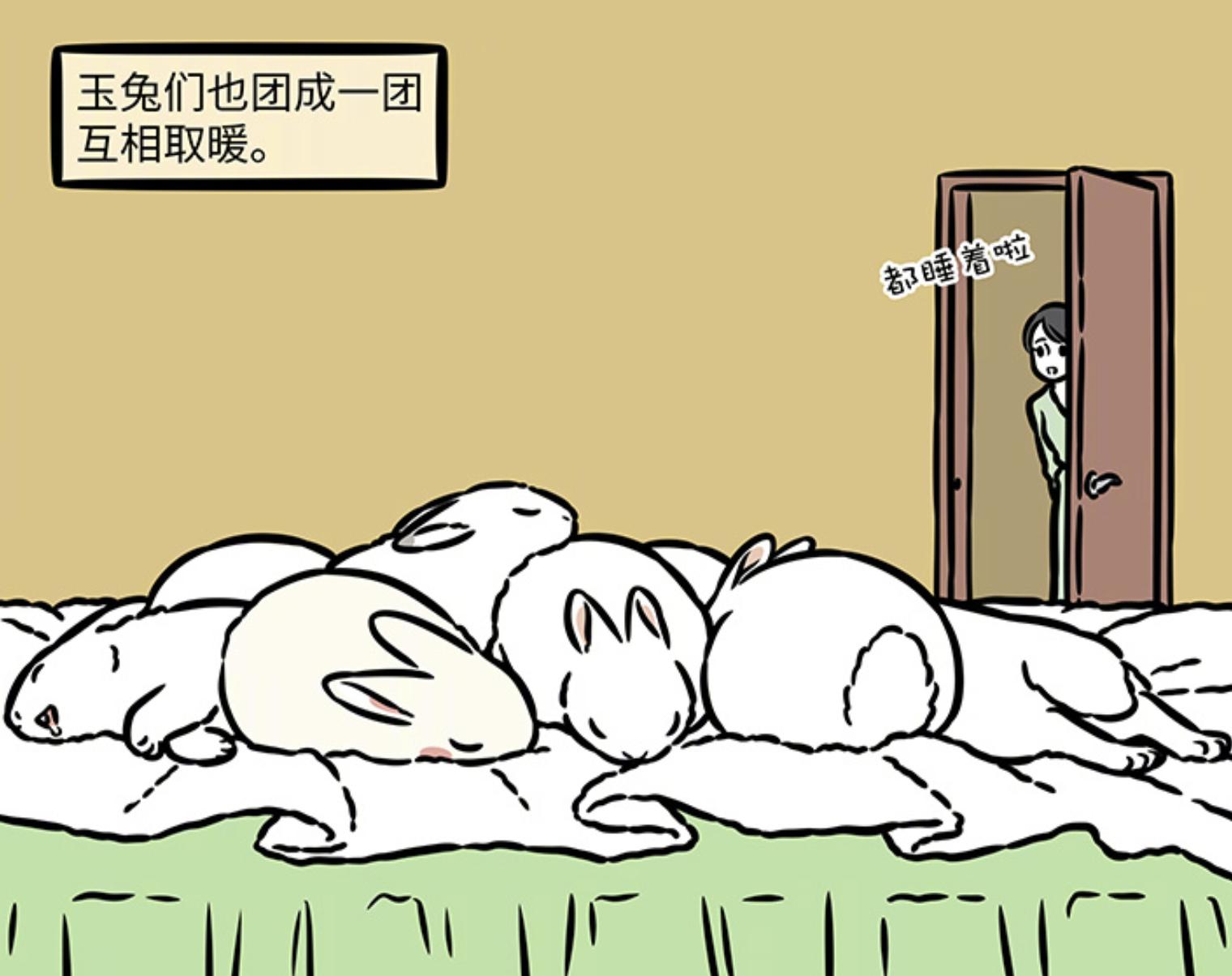 要知道玉兔們也是羣居動物,自然也是抱團取暖的。這不玉兔們靠在一起,在巨大的牀上美美的睡大覺,甚至旁邊還有專門照顧的人,在觀察着它們,隨時提供服務。不得不說,玉總就是財大氣粗,對自己員工的待遇也是非常的好。
