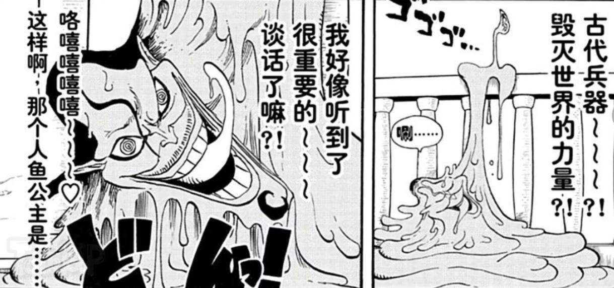 不過在本話情報中,尾田老師總算是讓黑鬍子海賊團有了新的行動,而且此次的黑鬍子海賊團船隻,帶隊的是範奧卡與戴彭,黑鬍子並沒有親自前來。範奧卡與戴彭趁着草帽一夥與海軍大將以及五老星大戰的時候,早就偷偷的登陸了蛋頭島,並且執行自己此行的任務。