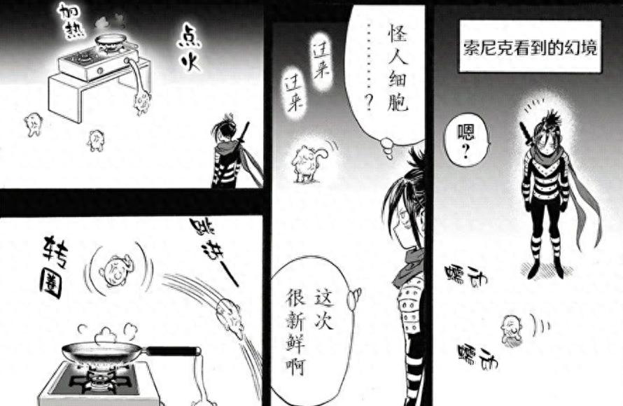 要知道索尼克上次喫掉怪人細胞,導致直接拉稀,現在到了幻境之中,怪人細胞擬人化,不但自己開火烹炒自己,還自己裝盤讓索尼克品嚐,而且出言誘惑索尼克,只要喫掉便能獲得強大的力量。