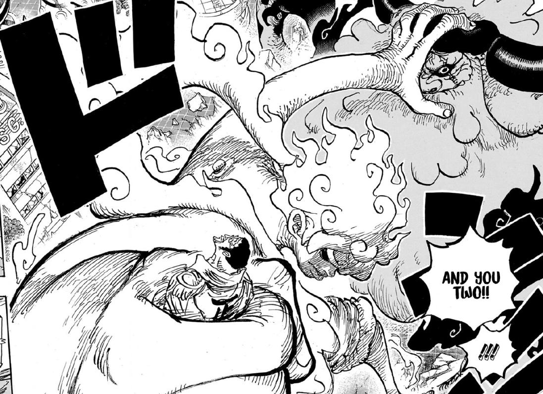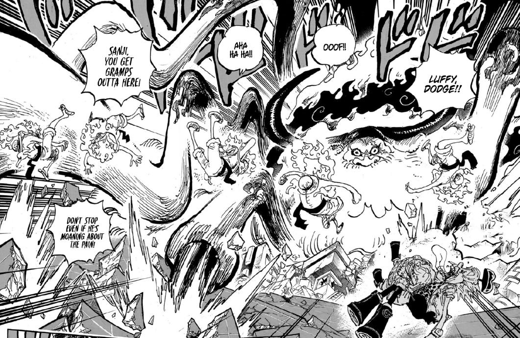 大熊波妮弗蘭奇阿特拉斯他們順利逃走了,還剩下貝加龐克與山治以及路飛三人,只是沒想到黃猿不講武德,直接偷襲,並且用激光背刺了昔日好友貝加龐克。從漫畫中能夠看到,路飛發怒了,直接一手捏爆黃猿,讓他口吐鮮血,一手按住開啓全新形態的土星薩坦,成功讓山治救走了受傷的貝加龐克。