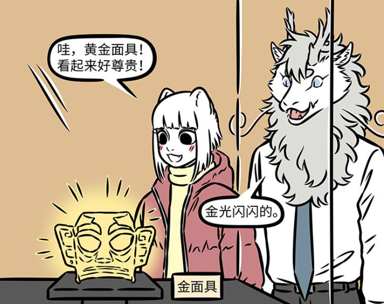 結束了青銅龍的話題,九月和烈烈繼續逛,這次九月發現了一個黃金面具,金光閃閃的,光是看着就很尊貴。而且九月的眼睛都亮了,畢竟黃金在哪都備受歡迎,尤其是像九月一樣的打工人,誰不渴望想要得到這麼一個沉甸甸的黃金面具呢。