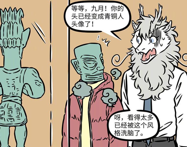 又到了非人哉漫畫更新的時間了,媽祖帶受傷的新朋友回家的故事結束了,九月和烈烈閃亮迴歸。兩人一起出差逛三星堆博物館,見到了帥氣的青銅龍,也看到各種青銅面具,只是九月太容易受影響,直接變成了青銅人,着實把烈烈給驚呆了,而且兩人獨處的時光也是糖分超標,下面就讓我們一起來深入看看吧。