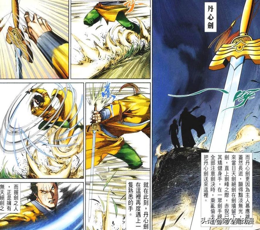 其實英雄劍與丹心劍也不能說毫不相關,二者多少還是有些聯繫的,按照漫畫中的說法,丹心劍是慕應雄照着英雄劍的樣子打造而成的,重量與外觀是一樣的,只有劍柄處有細微的差別,英雄劍的劍柄看起來更加堅硬,丹心劍的劍柄則是圓潤一些。