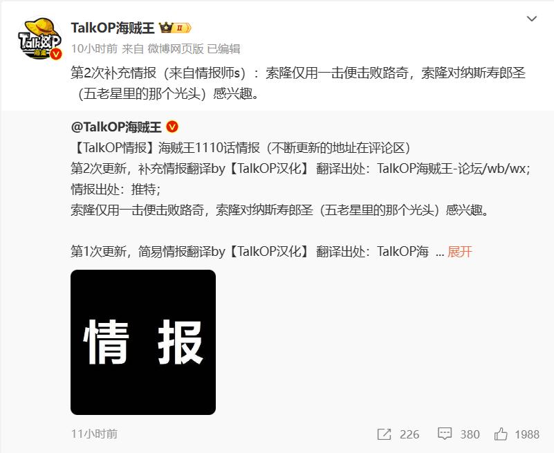 海賊王漫畫第1110話的第二波情報都已經更新了,最高興的當屬下週不休刊了,同時本話的信息量也很多。不僅有大和的戲份,正在周遊和之國,而且五老星順利來到蛋頭島,全員開啓覺醒形態,並且與路飛爆發大戰,但是東利布洛基他們強勢參戰,同時索隆秒殺了路奇,並挑戰財務武神,下面就讓我們一起來深入看看吧。